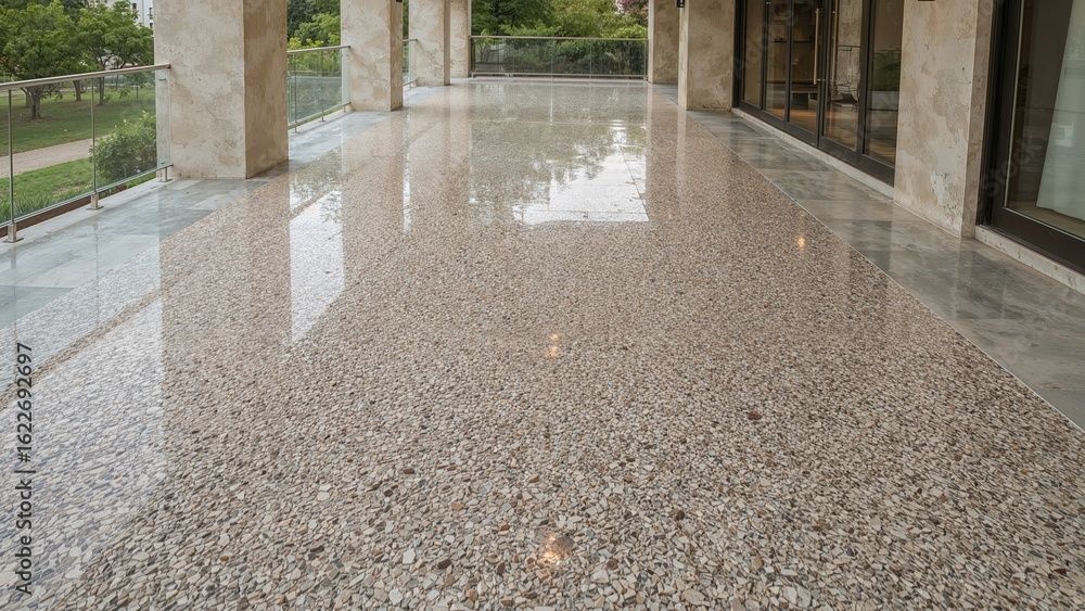 Die Verarbeitung erfolgt staub- und lärmfrei, wodurch auch eine Sanierung in bewohnten Objekten problemlos möglich ist. Gleichzeitig haben Sie völlige Gestaltungsfreiheit, denn die Farbwahl ist individuell anpassbar und macht aus jeder Fläche ein Unikat. Ein besonderer Vorteil liegt in der Sicherheit: Mit unserem Steinteppich R10 schaffen wir eine rutschgehemmte Oberfläche, die auch bei Nässe zuverlässig Halt bietet.